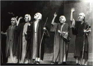 We worked a lot today on choral sections of the play- But we’ll be dressing the actors in The Sad and Cautionary Tale of Smackheaded Peter in contemporary clothes, rather than traditional Greek costumes.